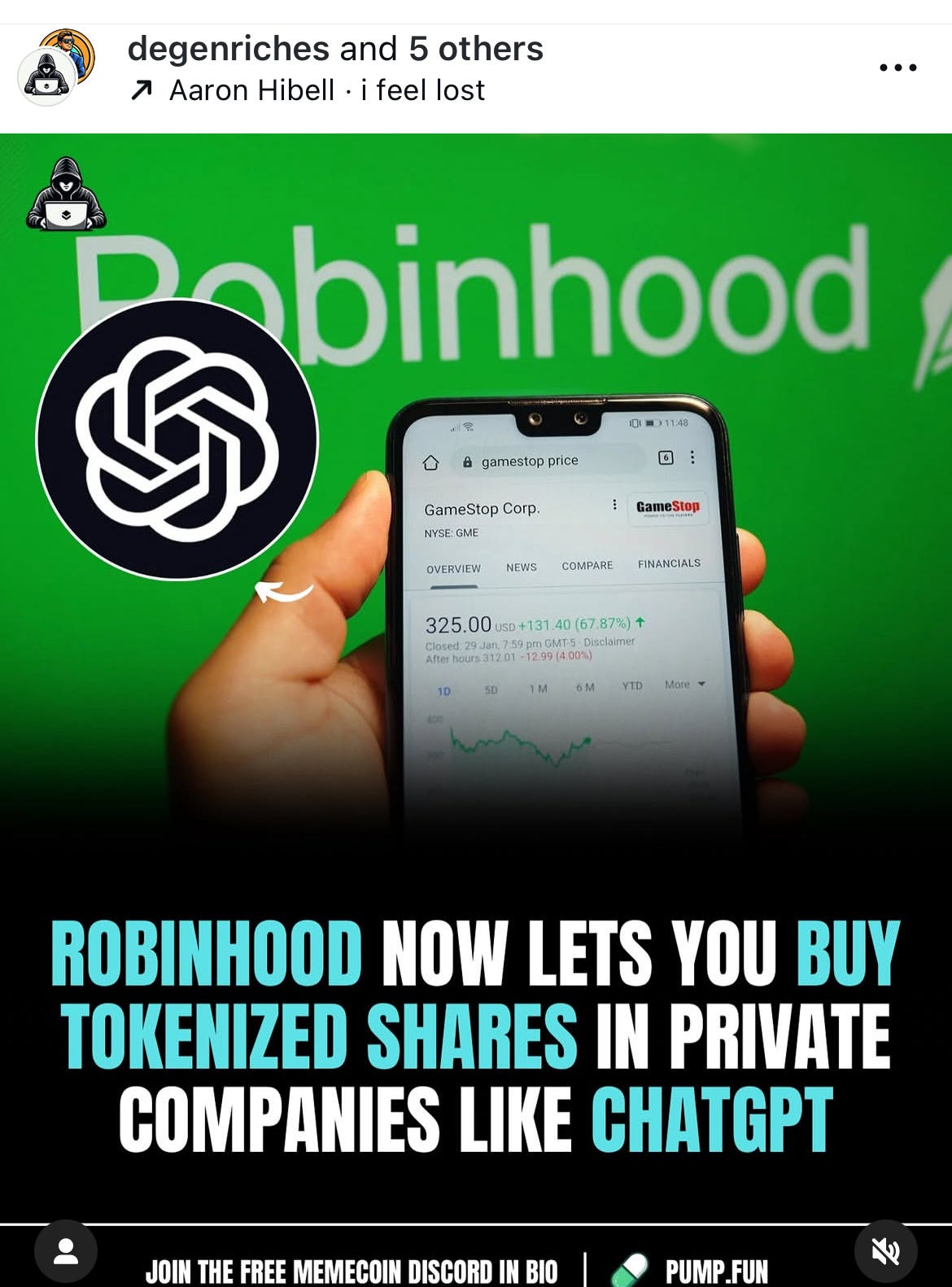 (Bitcoin.com News / Emmanuel Musa)🟩 Robinhood is now tokenizing private shares — yes, even in companies like ChatGPT.
