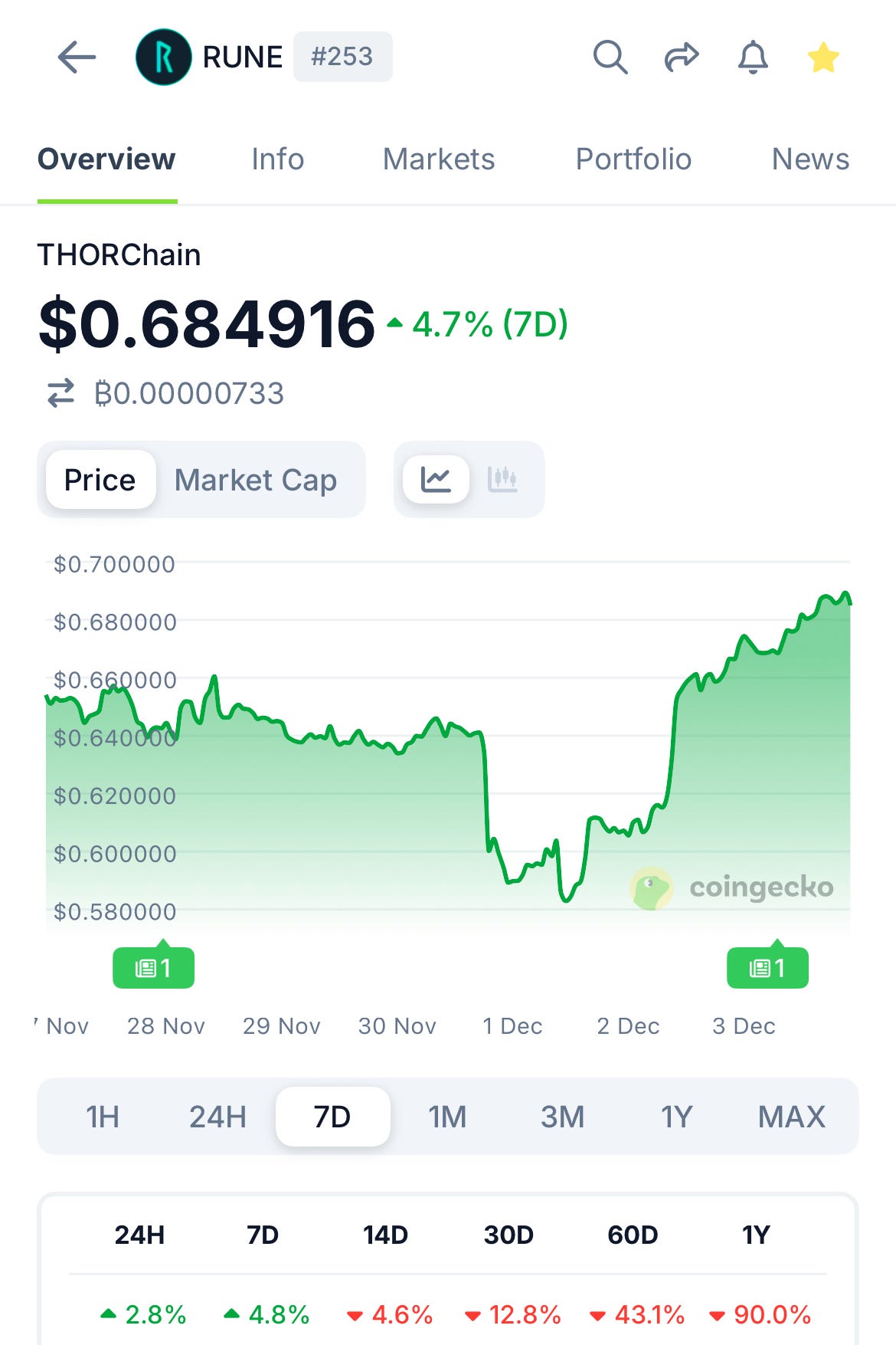 🟩 THORChain (RUNE) — $0.6849