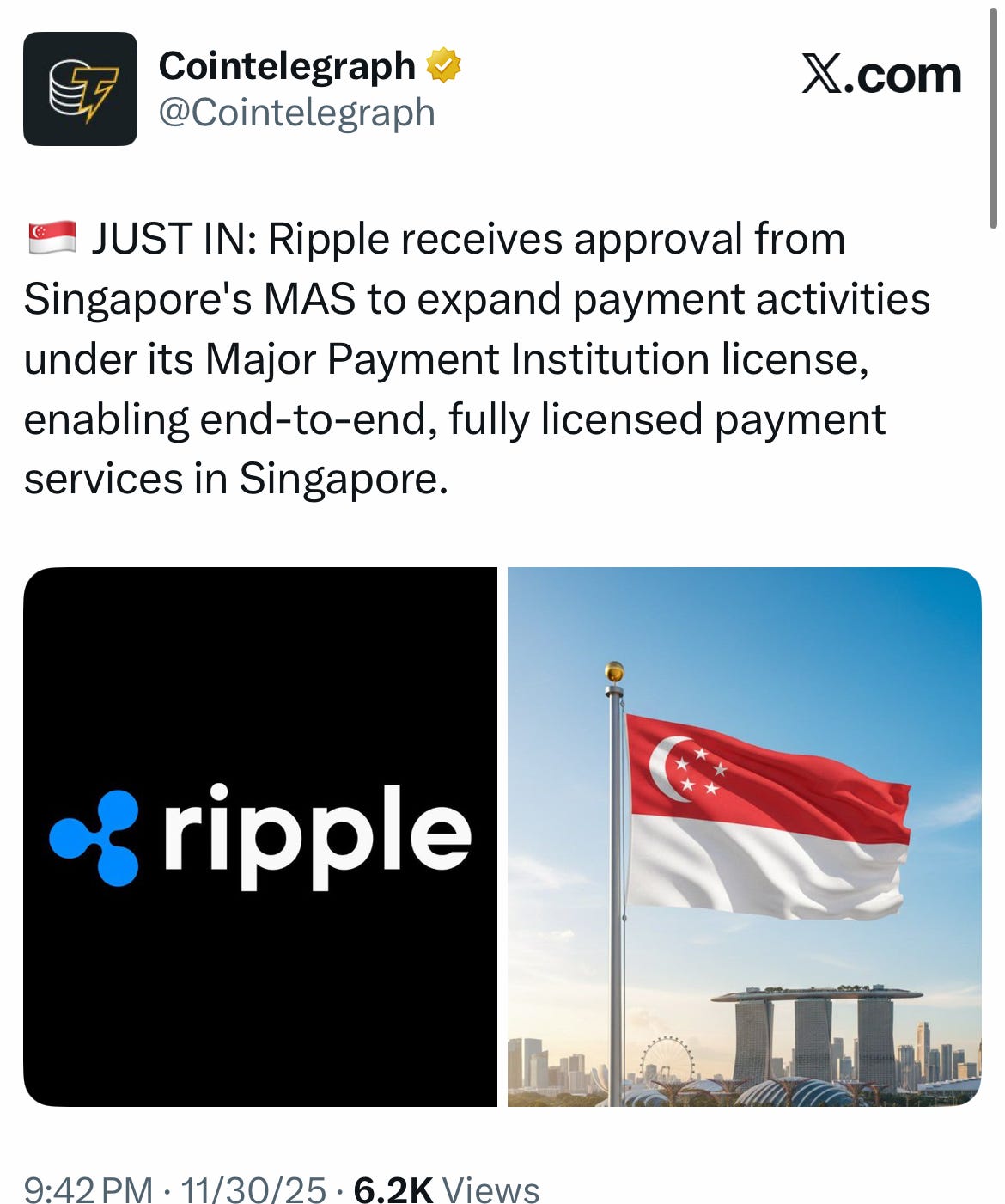 Singapore doubles down on crypto clarity — Ripple expands under a Major Payment Institution license.