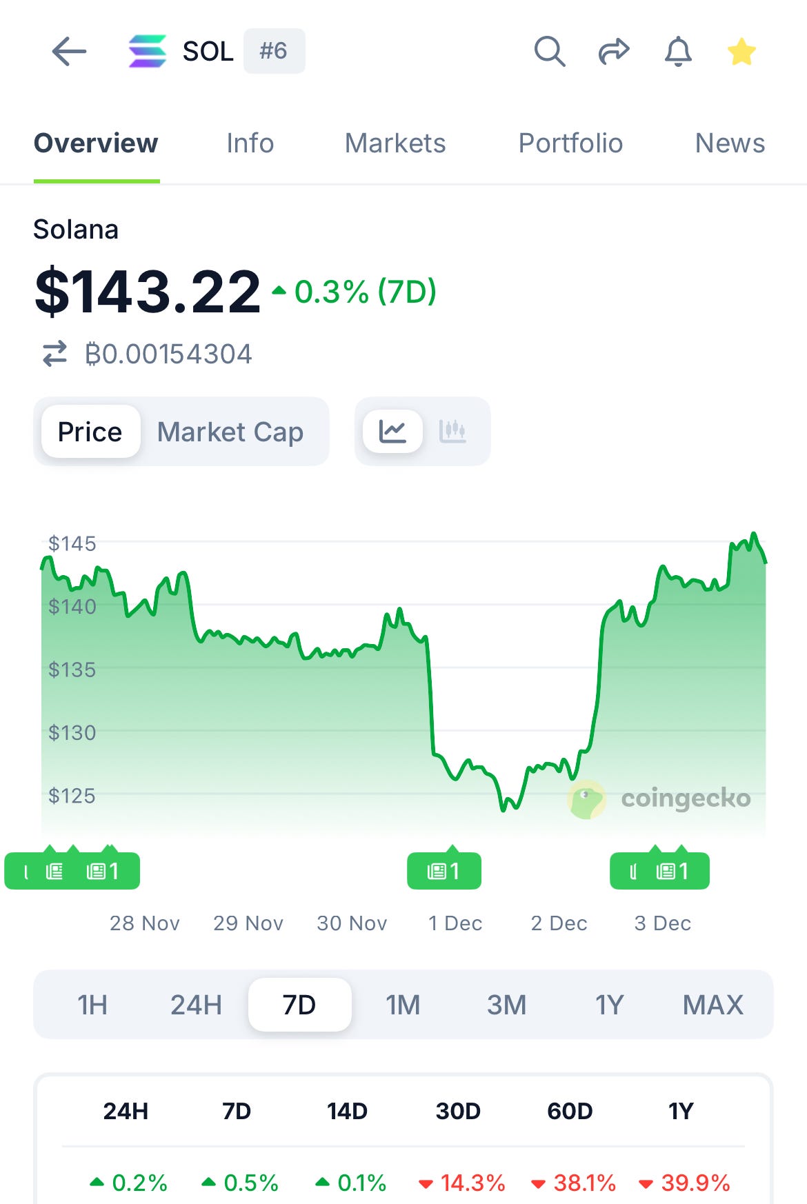 🟩 Solana (SOL) — $143.22