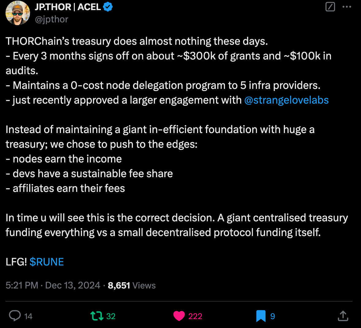• RUNE Incentives: THORChain announced a $20M+ incentive program for affiliates to drive deeper adoption. Source: JP Thor.