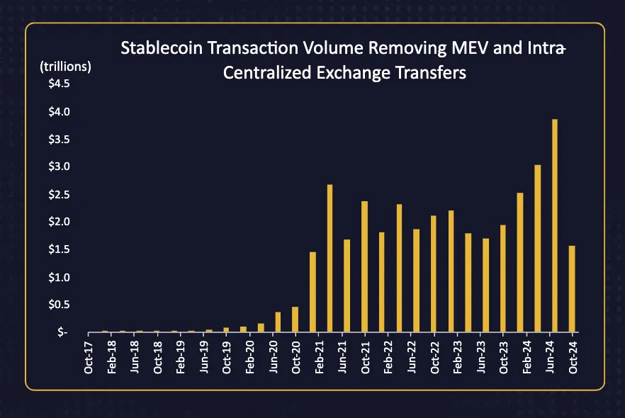 Stablecoin transaction volume is hitting all-time highs, driven by DeFi and global liquidity needs: